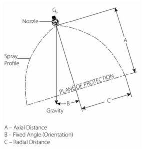 Typically, open spray nozzles are not differentiated by orientation, but by K-factor and Spray Angle. All these attributes must be considered when selecting the appropriate nozzle(s). Each listed attribute also affects the surface area coverage of each nozzle’s spray area. In our designs, we ensure all aspects are accounted for to provide the most complete water spray protection possible.